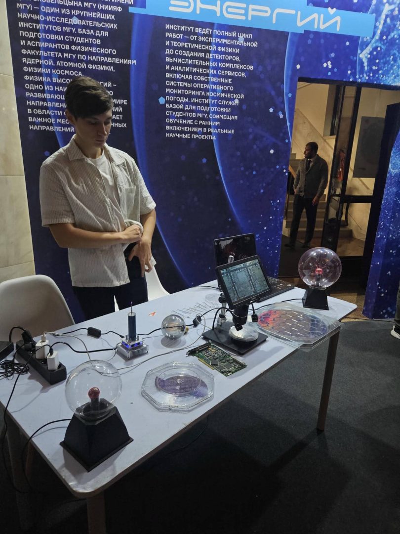 Особое внимание участников было уделено инженерно-космической экспозиции, подготовленной воздушно-инженерной школой в сотрудничестве с научно-исследовательским институтом ядерной физики МГУ.