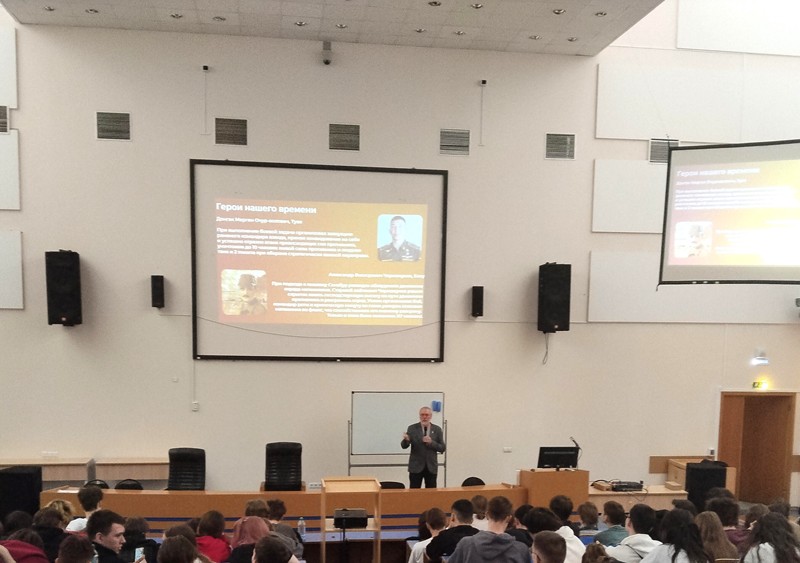 В ходе лекции Андрей Владимирович затронул ключевые аспекты единства и служения Отечеству. Студенты узнали о важных страницах истории нашей великой страны, о подвигах выдающихся защитников Родины, о героях, проявивших мужество в ходе специальной военной операции. Особое внимание было уделено деятельности Всероссийской общественной организации ветеранов «Боевое братство», которая объединяет тех, кто посвятил себя защите страны. Андрей Владимирович подчеркнул, что на протяжении всей истории России представители самых разных национальностей плечом к плечу вставали на защиту родной земли, демонстрируя единство и силу духа.