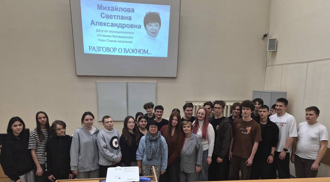 17 апреля студенты первого курса Московского приборостроительного техникума Российского экономического университета встретились с Михайловой Светланой Александровной, поэтессой, членом Союза писателей России, членом депутатской группы Совета депутатов внутригородского муниципального образования Очаково-Матвеевское.